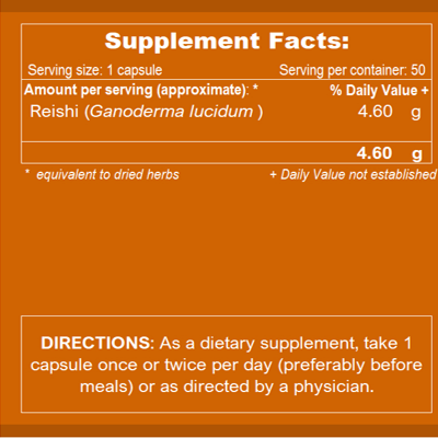 ⭕ Setiap botol mengandungi 50 kapsul manakala setiap kapsul mengandungi (anggaran) ekstrak Reishi Mushroom (Ganoderma lucidum) yang bersamaan dengan 4,600mg serbuk herba kering.